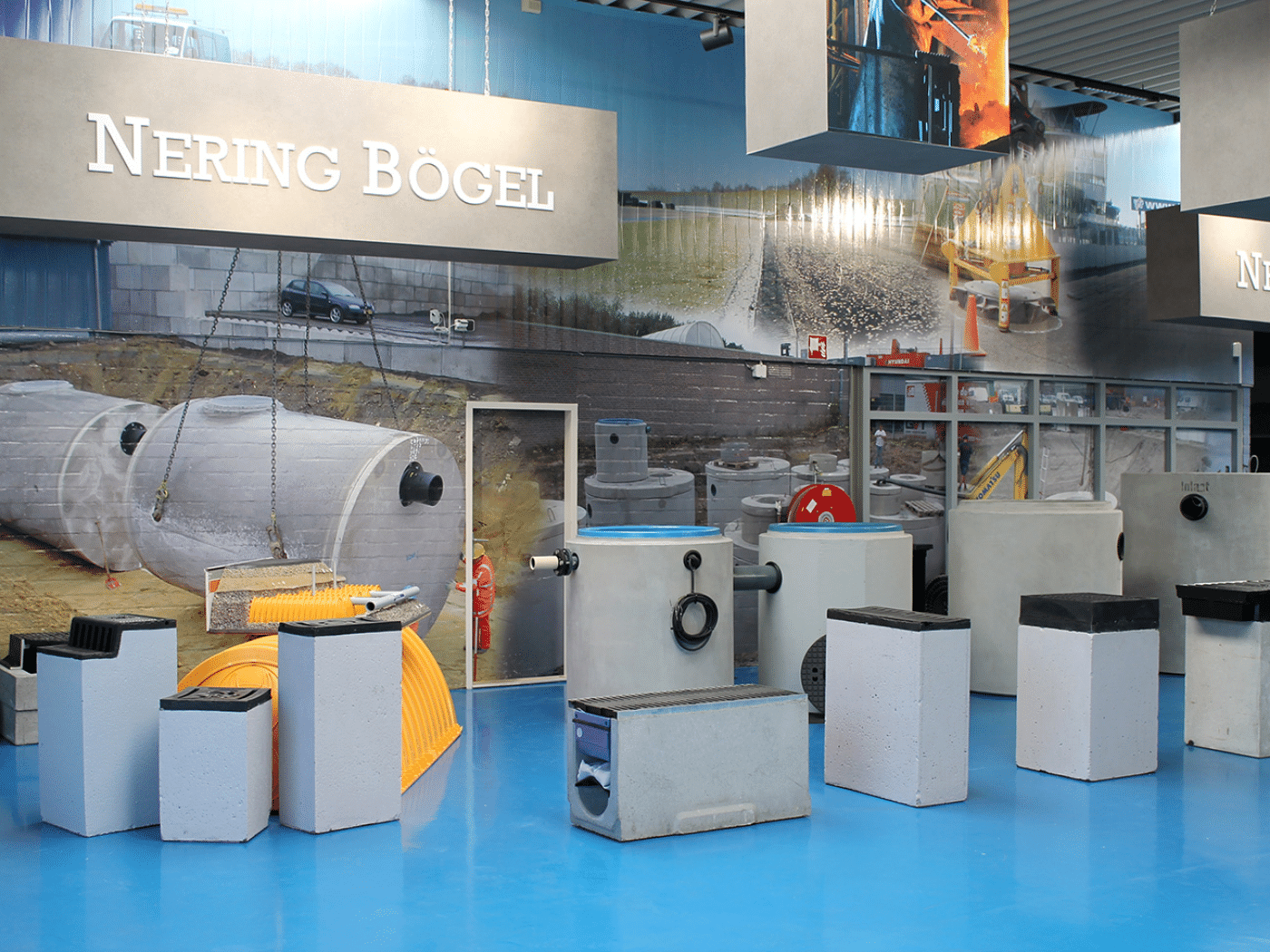 Nering Bögel is onder andere gespecialiseerd in afvoerputten en -goten, goten en roosters, vloerluiken, afdekkingen, kolken en putafdekkingen, terugslagkleppen, spindelschuiven, en olie- en vetafscheiders. Het mooiste is dat de meeste producten nu ‘live’ staan opgesteld, klaar om bekeken, aangeraakt en gedemonstreerd te worden. Zoals alles bij Nering Bögel gedaan wordt, is ook dit nieuwe informatiecentrum tot stand gekomen in een ‘joint effort’. De mannen achter dit interne project: o.a. Martijn Heldens (projectmanager) en Henk Stals (hoofd techniek).