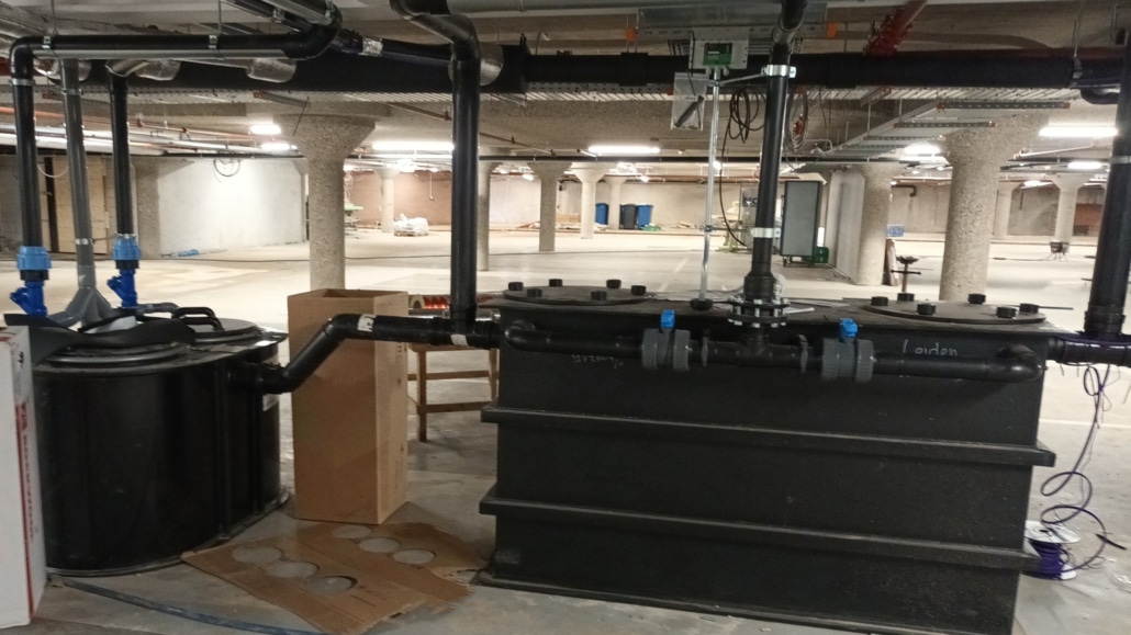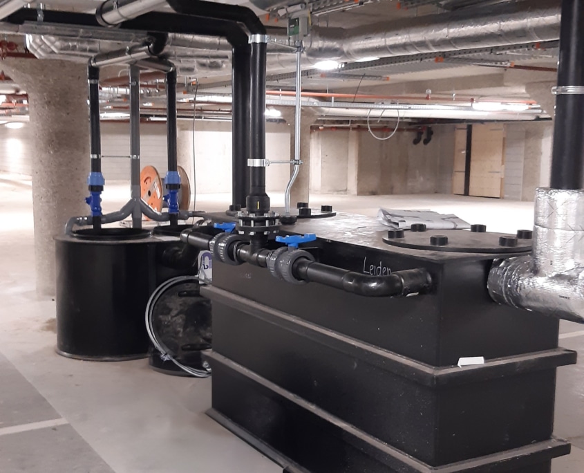 Vrijstaande vetafscheider incl. pompinstallatie t.b.v. bedrijfsmatige keuken Universiteit Leiden Cluster Zuid.